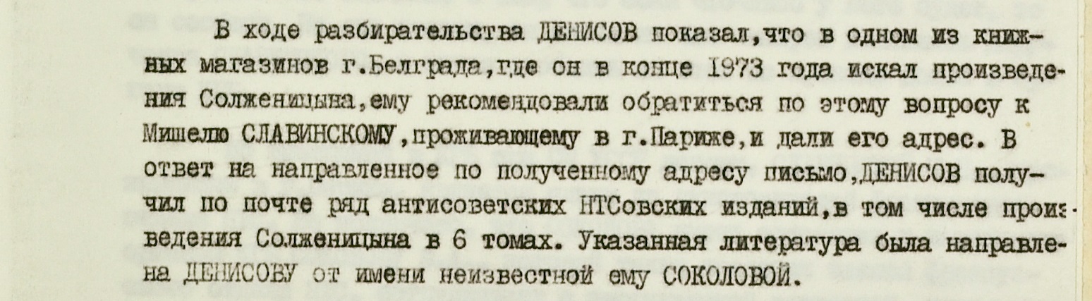 Его сняли с поезда и допросили. Он пояснил, что специально искал труды нобелевского лауреата в книжных магазинах Белграда. Ему дали парижский адрес представителя эмигрантской организации “Народно-трудовой союз” (НТС), который через некоторое время и прислал нужные книги.