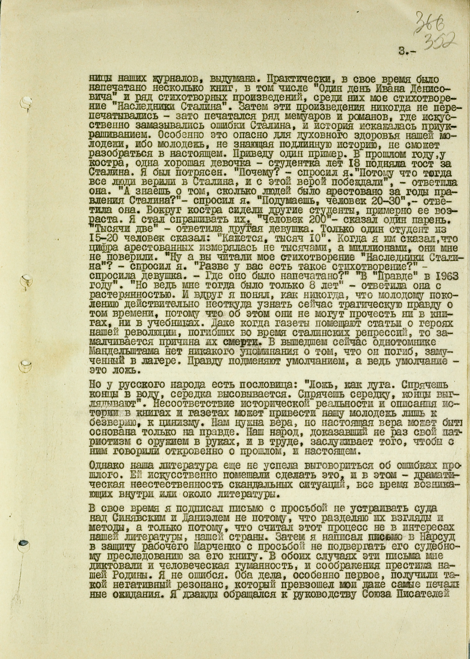 “Кухонными” разговорами поддержка Солженицына не ограничивалась. После его выдворения в некоторых украинских городах обнаружились самодельные листовки в защиту писателя. Некоторые из них попадали в КГБ и тоже сохранились в архиве. В листовке, которую кто-то повесил на доску объявлений комбината в Кременчуге, Солженицына называют “великим советским демократом” и “народным адвокатом”. Автор заявляет, что несмотря на репрессии, люди будут продолжать дело Солженицына и Сахарова – “борьбу за свободу, прогресс, против отвратительного, прогнившего насквозь существующего режима”.