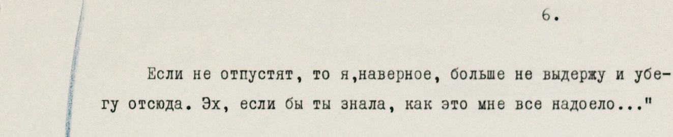 “Я не очень большой пьяница, но иногда настроение падает до нуля, нигде не находишь себе места, да его-то искать негде – палатка четыре на четыре. Вот плюешь на все, на эту проклятую жизнь, на здоровье и даже на тот день, когда родился”, – пишет о службе советский гражданин.