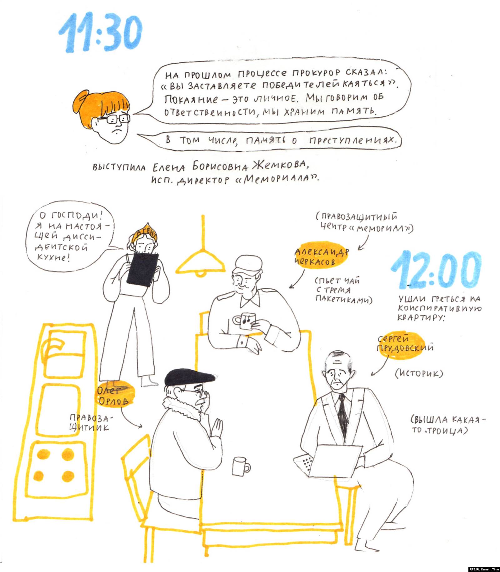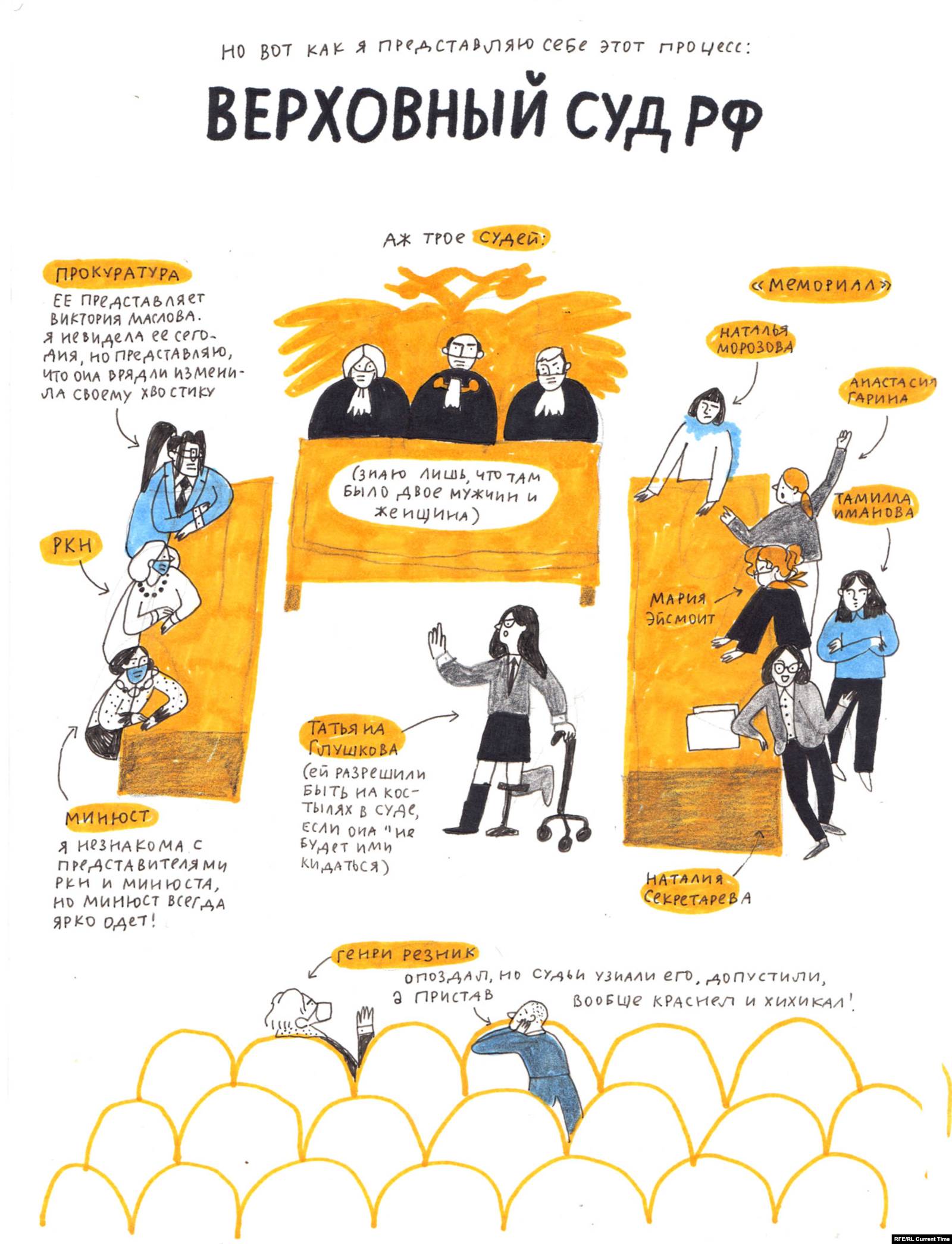 "А потом кто-то сказал негромко: "Апелляцию отклонили". Комикс-репортаж Кати Гущиной о ликвидации "Мемориала"