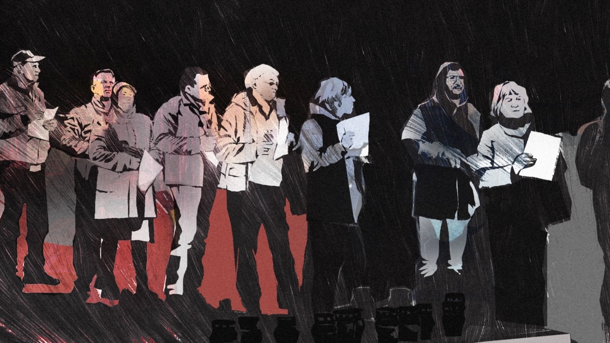 28 февраля Верховный суд окончательно ликвидировал "Международный Мемориал", оставив в силе решение, вынесенное ровно два месяца назад. По просьбе Настоящего Времени художница Катя Гущина нарисовала, что происходило на последнем заседании.