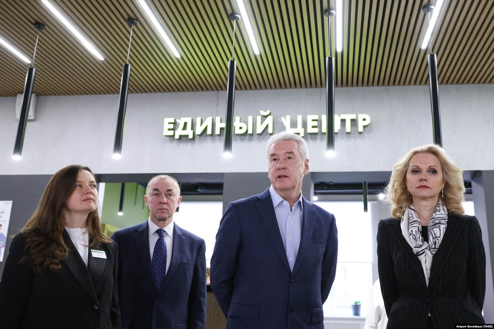 Директор Единого центра поддержки участников "СВО" Юлия Матвеева (слева), главврач московской Психиотрической больницы № 1 Георгий Костюк, мэр Москвы Сергей Собянин, вице-премьер РФ Татьяна Голикова