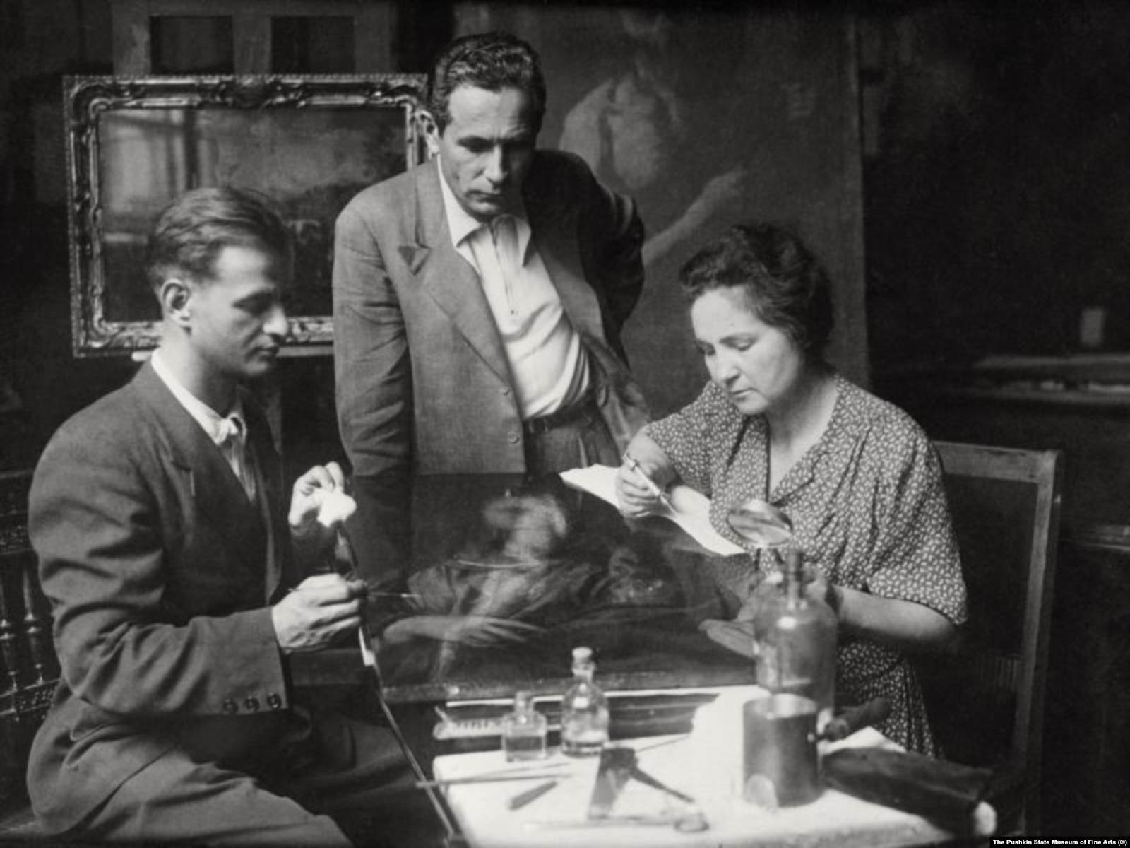 В этой же статье Антонова пишет о реставрационных работах, которые после прибытия картин провели в Пушкинском музее. Одна из самых известных и сложных реставраций – "Динарий кесаря" Тициана. Ее выполнял художник Павел Корин, автор витражей на московской станции метро "Новослободская" и мозаичных плафонов на "Комсомольской". Корин вспоминал, что ни разу не использовал при реставрации краски и кисть: фрагмент за фрагментом он возвращал на доску краски Тициана. В 1955 году "Динарий кесаря" передали Германии вместе с остальными шедеврами Дрезденской коллекции. Правда, из-за разницы во влажности в галерее Земпера в Дрездене и в Пушкинском музее "Динарий" снова стал разрушаться и потребовал реставрации. Теперь он выставлен в специальной "климатической" витрине.