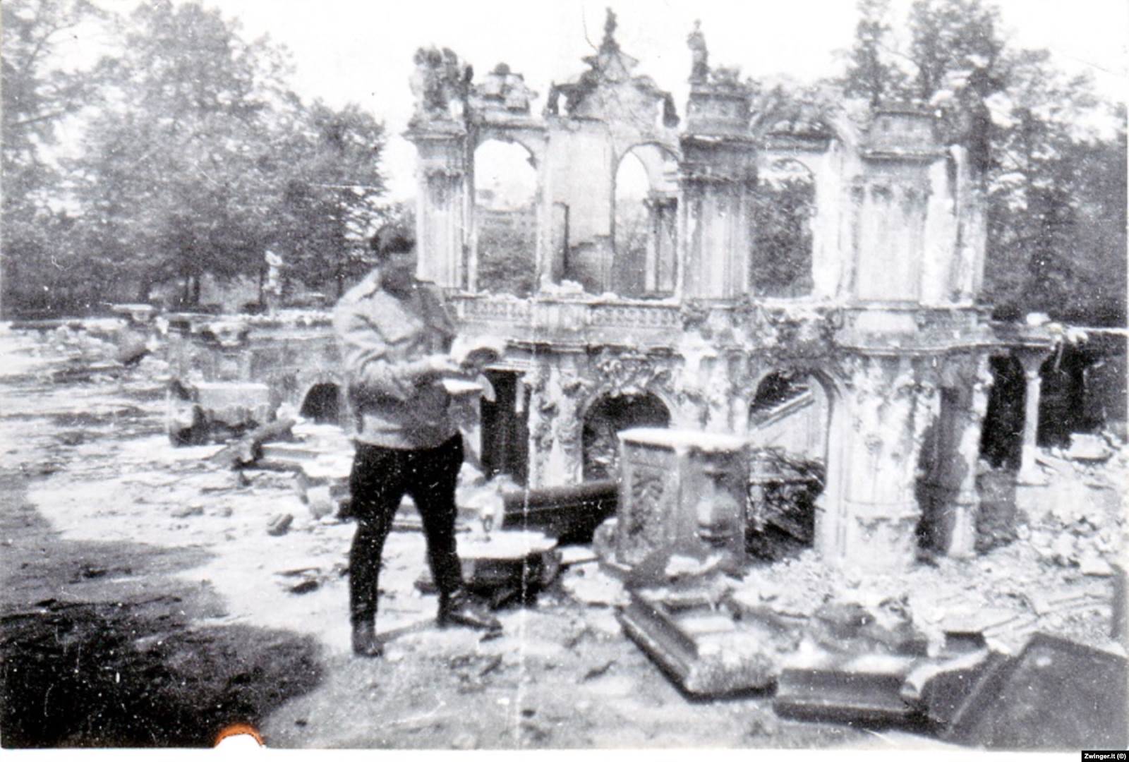 У молодого лейтенанта был фотоаппарат, и он снимал все, что видел на улицах Дрездена. Вот Рабинович на фоне руин и трамвая. Вот он с однополчанами на берегу Эльбы. Вот Рабинович в разрушенном Цвингере – музейном сердце города, который превратился в груду камней.